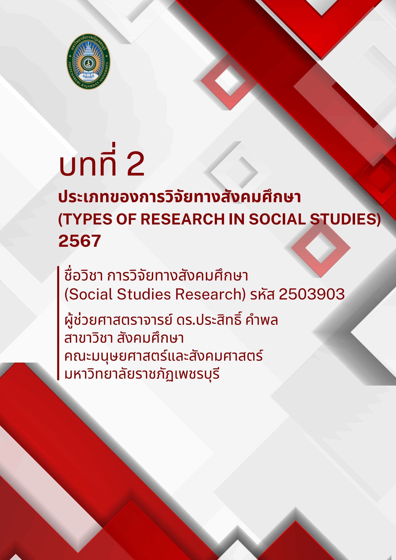 เนื้อหาย่อ : บทที่ 2 ประเภทของการวิจัยทางสังคมศึกษา Types of Research in Social Studies